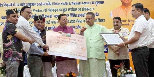 उत्तराखंड में स्वच्छता अभियान में उत्कृष्ट प्रदर्शन करते हुए लालकुआं नगर पंचायत ने एक और उपलब्धि अपने नाम कर ली है। मुख्यमंत्री पुष्कर सिंह धामी ने नगर पंचायत को ‘अटल निर्मल पुरस्कार 2024-25’ से सम्मानित किया। यह पुरस्कार नगर पंचायत के अध्यक्ष सुरेंद्र सिंह लोटनी, तत्कालीन अधिशासी अधिकारी राहुल कुमार सिंह और सभासद भुवन पांडे को मुख्य सेवक सदन, देहरादून में आयोजित एक कार्यक्रम में प्रदान किया गया।