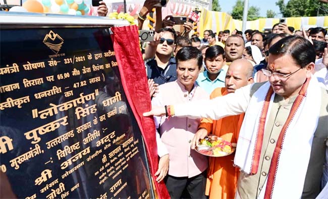 उत्तराखंड के मुख्यमंत्री पुष्कर सिंह धामी ने गुरूवार को खटीमा के कंजाबाग तिराहे पर 215 फीट ऊंचे भव्य राष्ट्रीय ध्वज का विधिवत पूजन, ध्वजारोहण और फीता काटकर लोकार्पण किया। यह