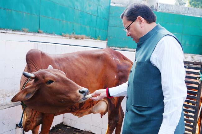 उत्तराखंड के मुख्यमंत्री पुष्कर सिंह धामी ने बुधवार को मुख्यमंत्री आवास स्थित गौशाला में गोवर्धन पूजा के अवसर पर गौमाता की पूजा-अर्चना कर प्रदेश की खुशहाली, समृद्धि और जन कल्याण