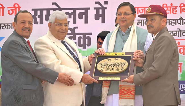 हल्द्वानी स्थित केंद्रीय रिजर्व पुलिस बल कैंप मुख्यालय में आयोजित पूर्व अर्द्धसैनिक बलों के सम्मेलन में मुख्यमंत्री पुष्कर सिंह धामी ने पूर्व सैनिकों, वीर नारियों और उनके परिजनों को संबोधित